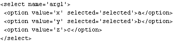 SelectedOptions. In this example, the option labeled "a" will be selected.