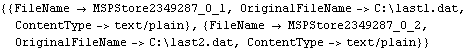 The result of MSPGetUploadFileList is a list of lists of rules that show filenames on the server, original filenames on the client, and content types.