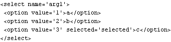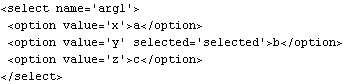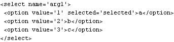SelectedOptions. In this example, the option labeled "a" will be selected.