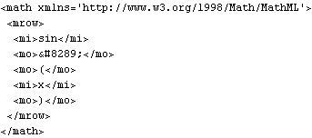 Alternatively, you can represent the MathML as symbolic XML, as shown in below.